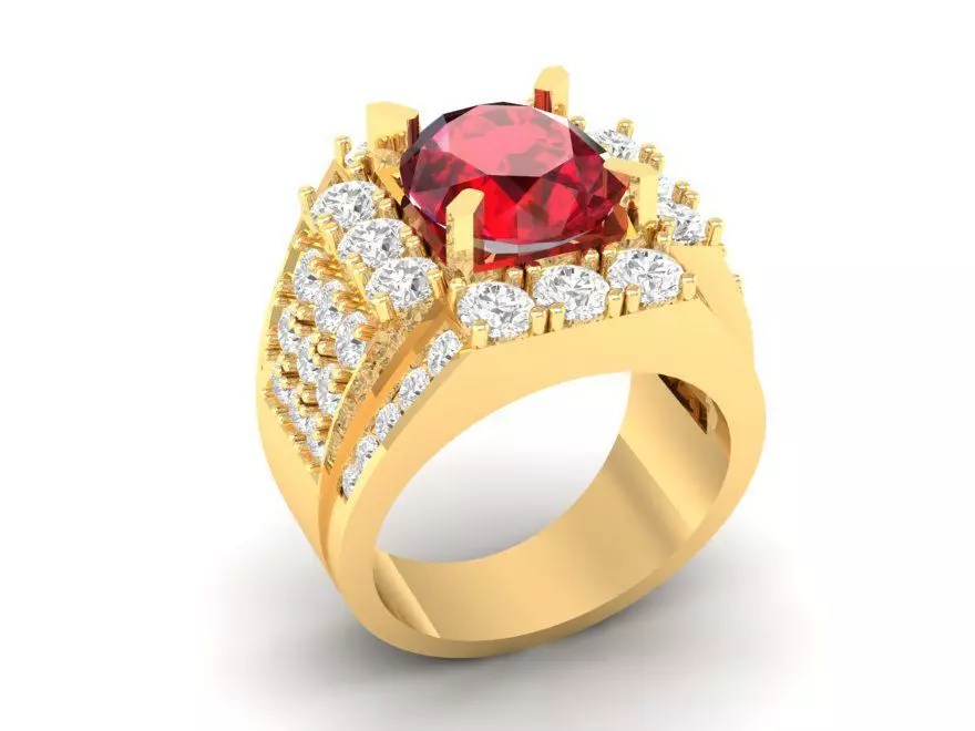 This 3D model represents a luxury statement men’s ring featuring a large central gemstone surrounded by multiple rows of sparkling diamonds. The bold and powerful design makes it an ideal men’s jewelry piece for those who prefer eye-catching and elegant rings.
