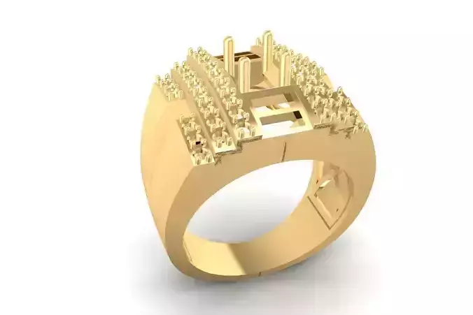 This 3D model showcases a luxury men's ring design featuring a bold square top with multiple stone settings. The model reflects a modern architectural aesthetic with clean lines and strong geometric symmetry, making it ideal for high-end jewelry collections.