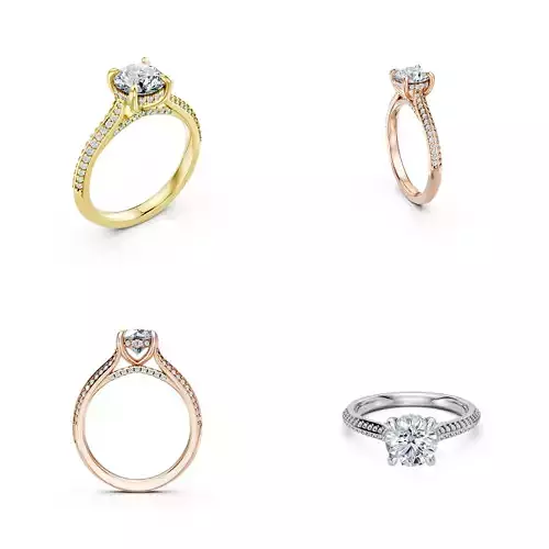 This luxury double pavé solitaire diamond ring CAD design features a brilliant round-cut center stone set in a strong, elegant prong setting, enhanced by a double-row pavé diamond shank that delivers exceptional sparkle and depth. The split-style double pavé detailing adds a premium, contemporary look while maintaining perfect balance and comfort for everyday wear.