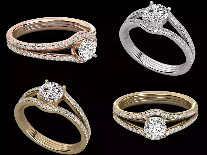 Ring Type: Solitaire diamond ringDesign Style: Luxury layered split pavé designSetting Type: Prong set center stoneBand Style: Double row split pavé shankModel Quality: Production-ready CAD design
