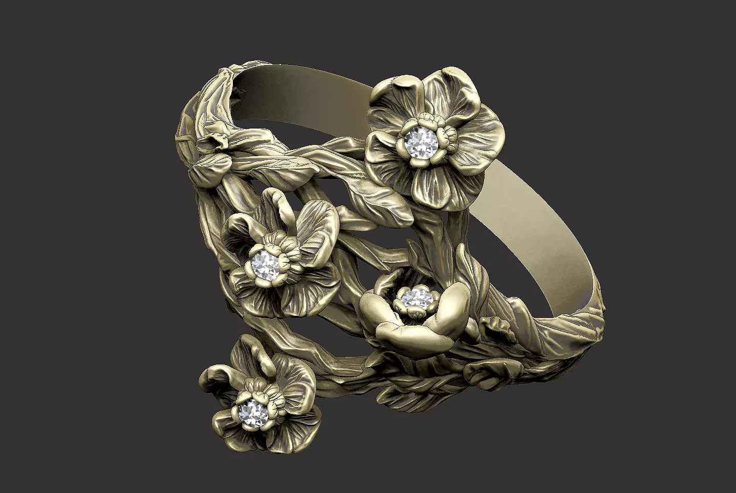 Luxury flower ring design blossom royal Sakura petal 3D print model