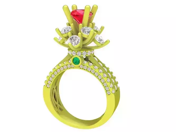 The 3D model is professionally designed with precise stone placement, clean topology, and balanced proportions to ensure excellent results in jewelry casting, rendering, and manufacturing workflows. The elevated center setting allows maximum light exposure, while the pavé diamonds along the band add continuous sparkle from every angle.