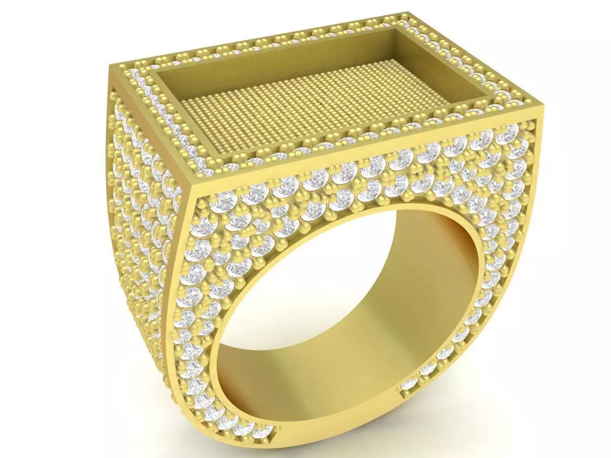 This 3D model features a bold men's square-face ring covered with full pavé stone detailing. The flat top surface and wide side panels allow dense stone placement, creating a high-end, luxurious appearance suitable for premium jewelry collections. The geometric structure is modeled with clean topology, ensuring accurate casting results and reliable stone-setting preparation.