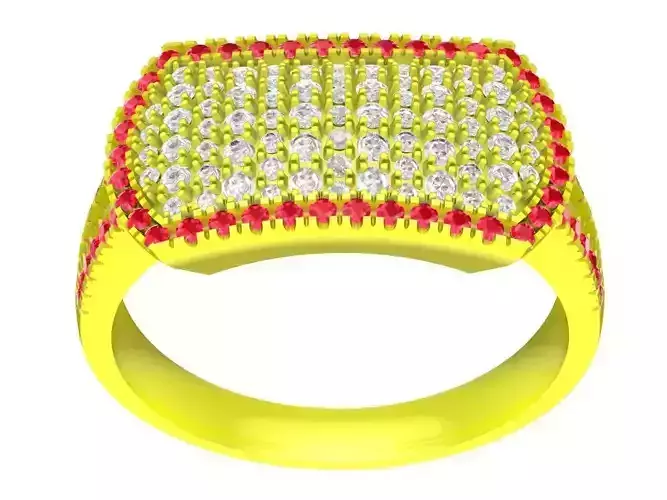 This high-end 3D ring model showcases a bold pavé diamond signet design, created specifically for men’s luxury jewelry collections. The wide rectangular top surface is fully set with small stones, delivering a powerful, masculine appearance while maintaining refined symmetry and balance.