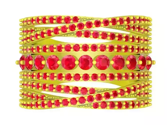 This high-quality 3D ring model features a bold wide band design composed of multiple rows of round gemstones arranged in layered horizontal lines. The multi-row structure creates strong visual impact, rich texture, and a luxurious appearance while maintaining balanced proportions suitable for fine jewelry.