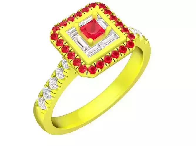 This model is optimized for production in gold, silver, or platinum and can be customized with diamonds or colored gemstones such as ruby, sapphire, or emerald. Ideal for jewelers and designers seeking a sophisticated square halo ring with timeless elegance and strong commercial appeal.