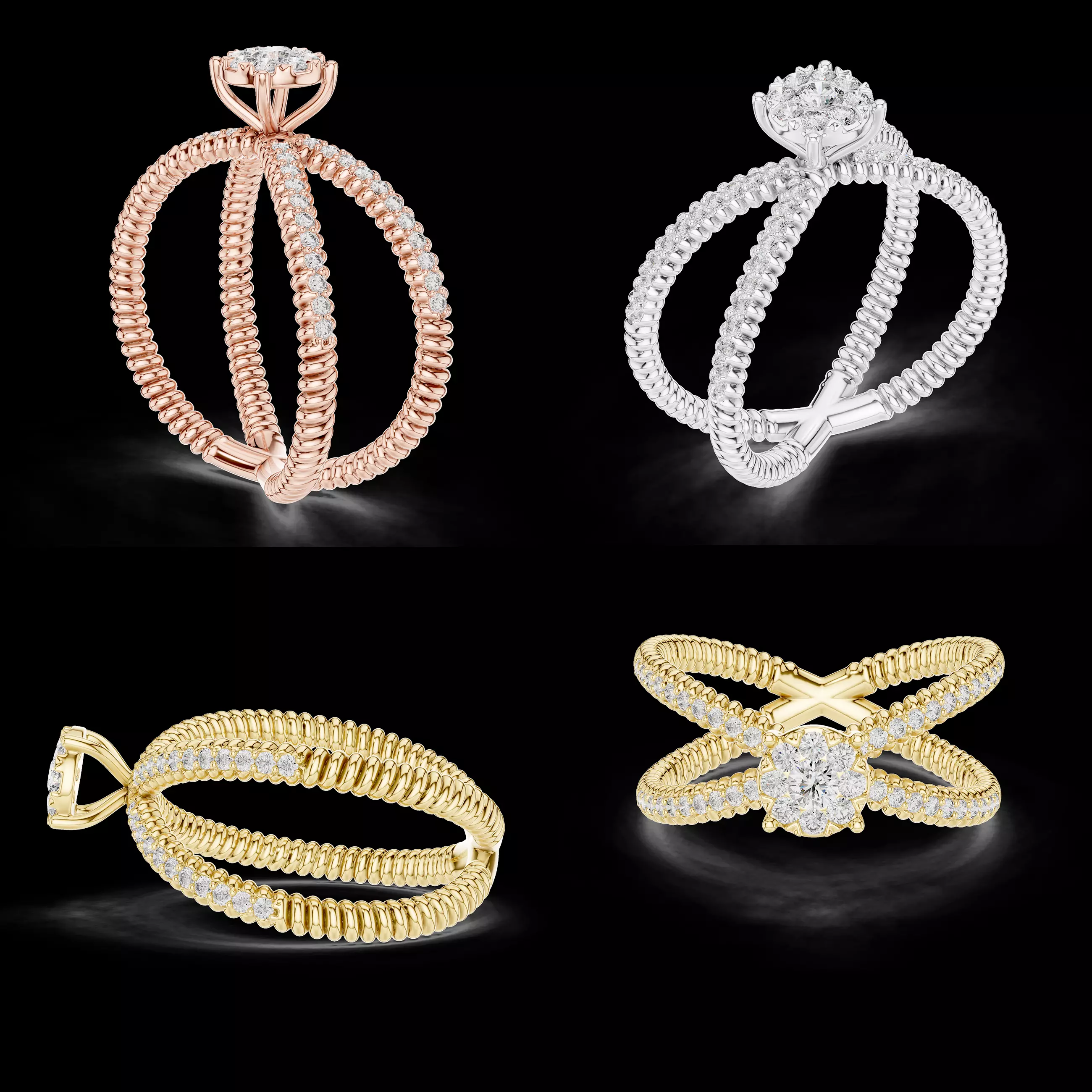 This exceptional multi-band crossover ring CAD design delivers a bold, contemporary luxury aesthetic with a distinctive sculptural presence. The design features multiple intertwined bands that wrap gracefully around the finger, creating a striking visual rhythm and a strong sense of movement. The crossover construction gives the ring a modern architectural character while maintaining elegance and wearability.