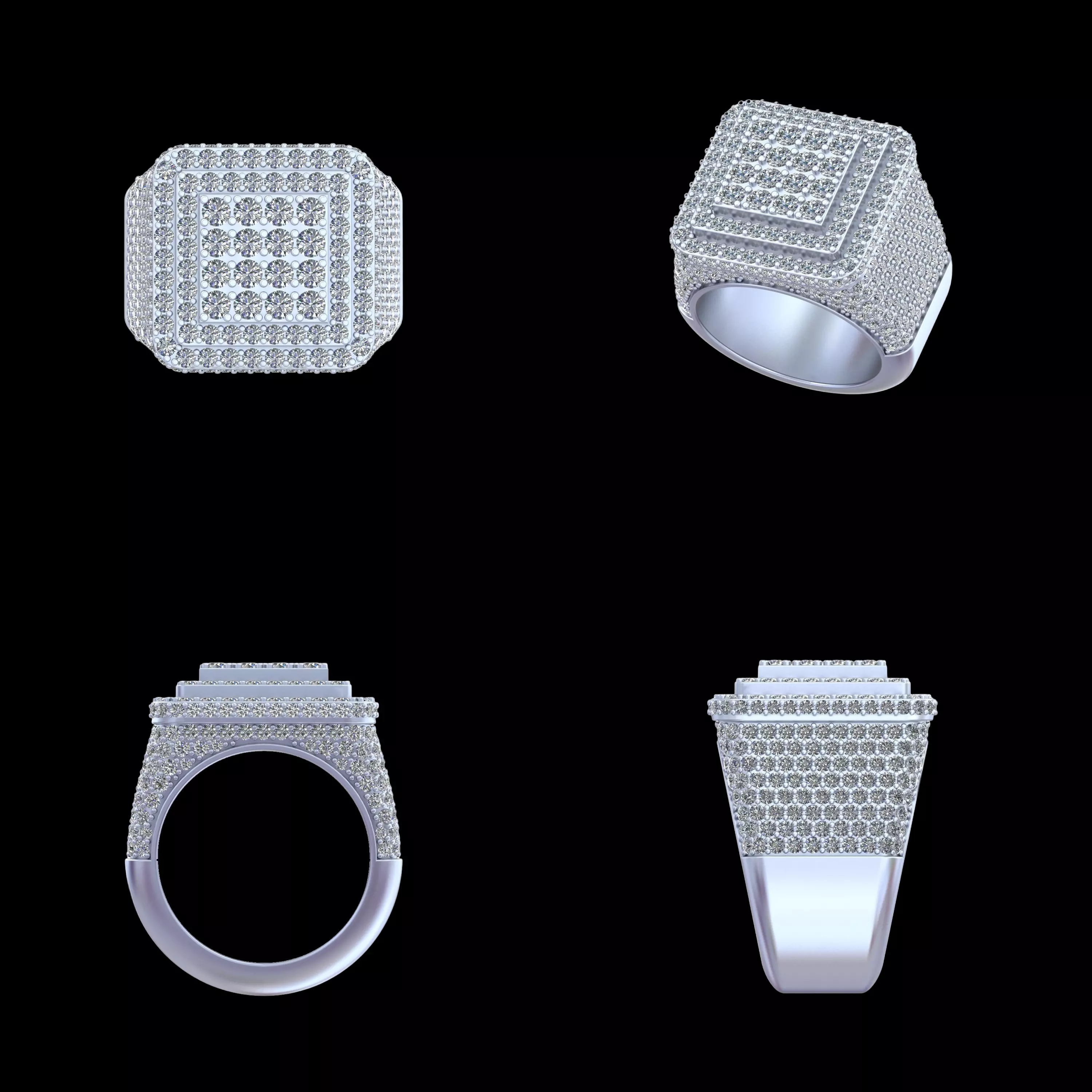 This Luxury Octagon Layered Pavé Signet Ring 3D model is designed for premium jewellery collections and bold statement ring production. The design features an octagon-inspired top structure built with multiple stepped layers, each enhanced with precision pavé stone settings to create depth, brilliance, and a powerful luxury presence.