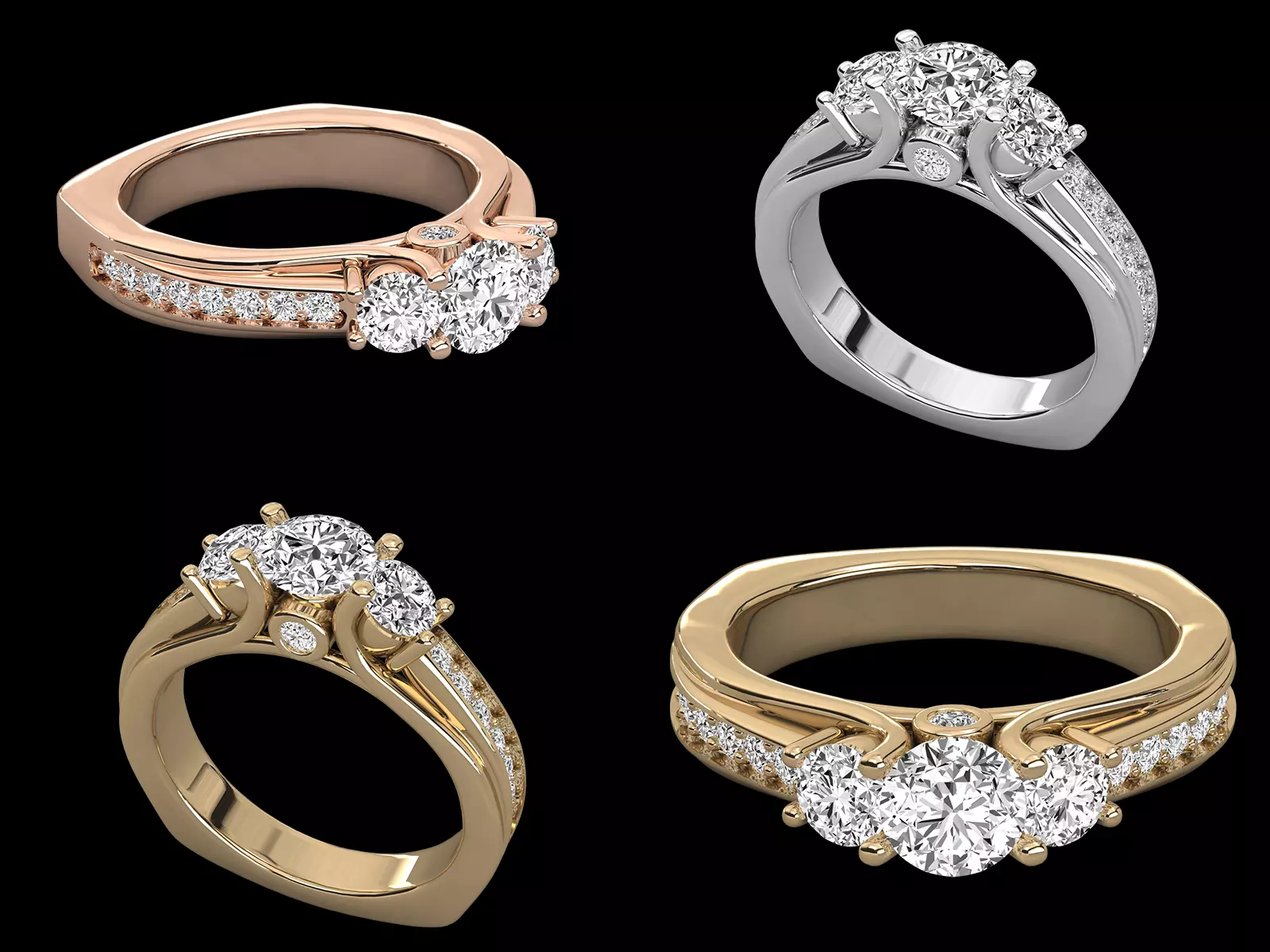 This luxury pavé three stone diamond ring CAD design is created with a refined blend of elegance, strength, and modern jewellery aesthetics. The design showcases a prominent round center diamond supported by two side stones, forming a balanced three stone composition that symbolizes timeless beauty and sophistication. Pavé-set diamonds along the band enhance brilliance and add a premium visual depth to the overall structure.