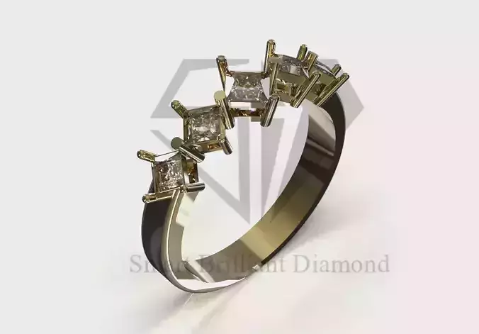 This model is designed with high engineering precision and its main focus is on purely displaying the brilliance of the square stones. The Five-Stone Band of this ring makes it a great choice for a Wedding Ring or Anniversary Ring.