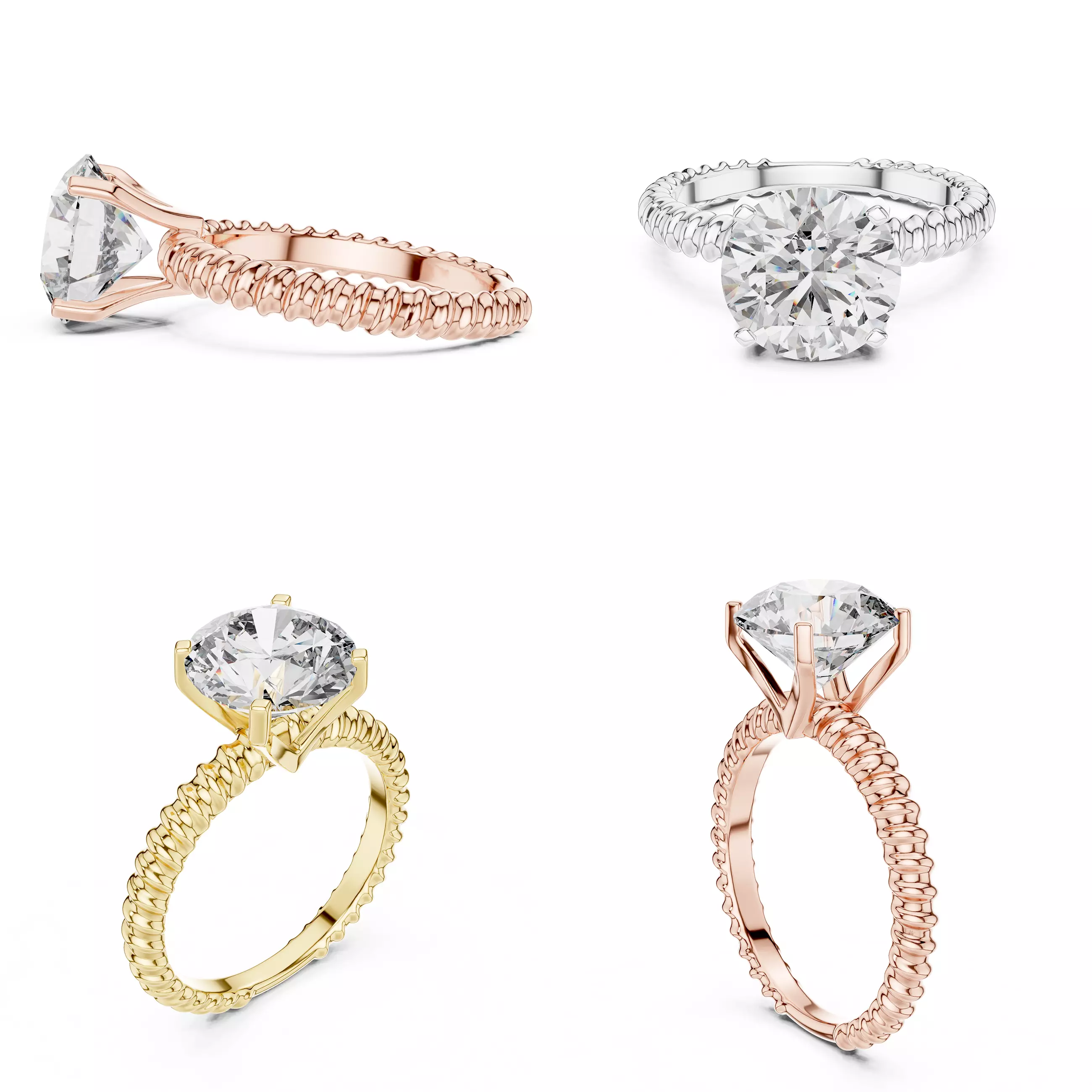 This luxury ladies diamond ring CAD design features a beautifully crafted rope-style twisted band paired with a classic round solitaire diamond setting. The intricate rope texture adds depth, elegance, and a premium handcrafted look, making the design stand out in high-end jewellery collections.