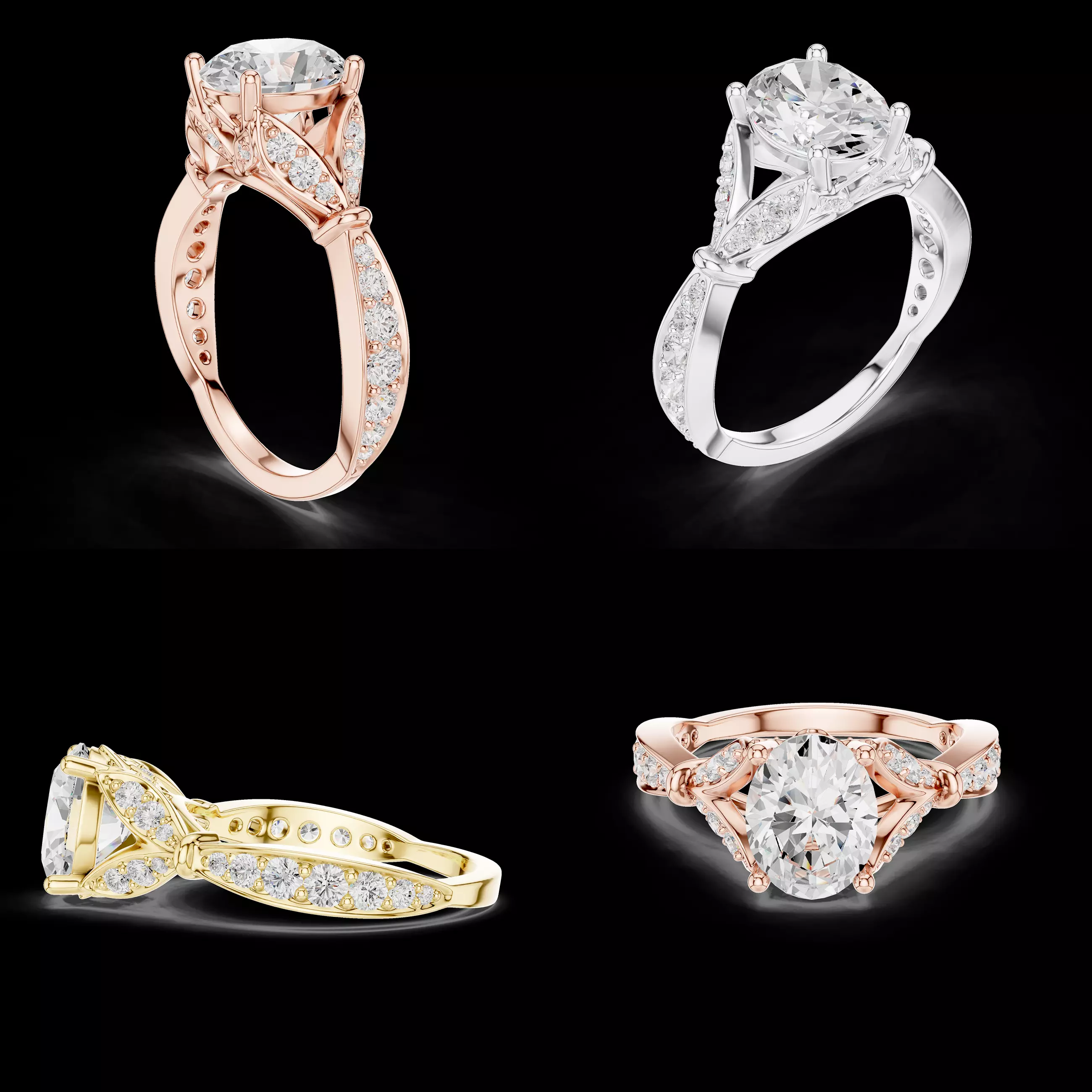 Production-ready CAD modelElegant side stone detailingStrong prong and basket constructionSmooth and comfortable inner shankAccurate stone alignmentSuitable for professional casting and polishing