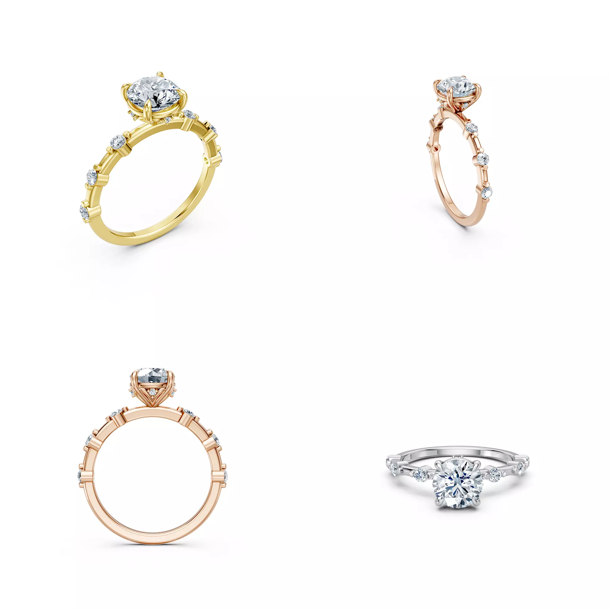 Created using professional jewellery CAD standards, this model offers clean geometry, accurate stone placement, and proper prong alignment. Special attention has been given to stone seats, spacing, and under-gallery design to support further development and preparation for manufacturing.