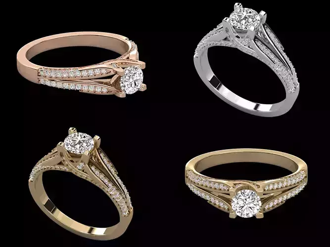 Ring Type: Solitaire diamond ringDesign Style: Luxury split shank pavé ringSetting Type: Prong set center stone with pavé shankBand Style: Double layer split shank designModel Quality: Production-ready CAD model
