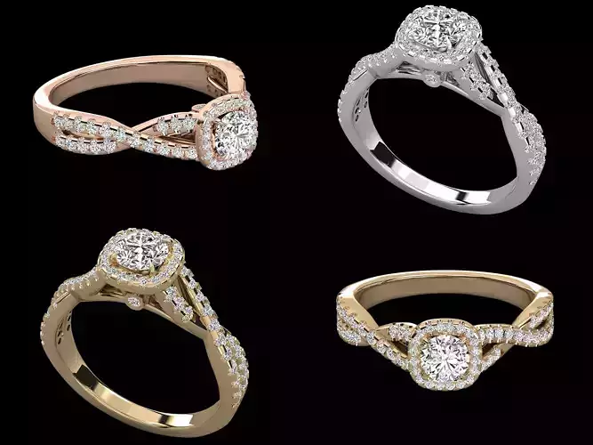 Ring Type: Halo solitaire diamond ringDesign Style: Square halo with split pavé bandSetting Type: Prong set center stone with pavé haloBand Style: Split pavé diamond shankModel Quality: Production-ready CAD design