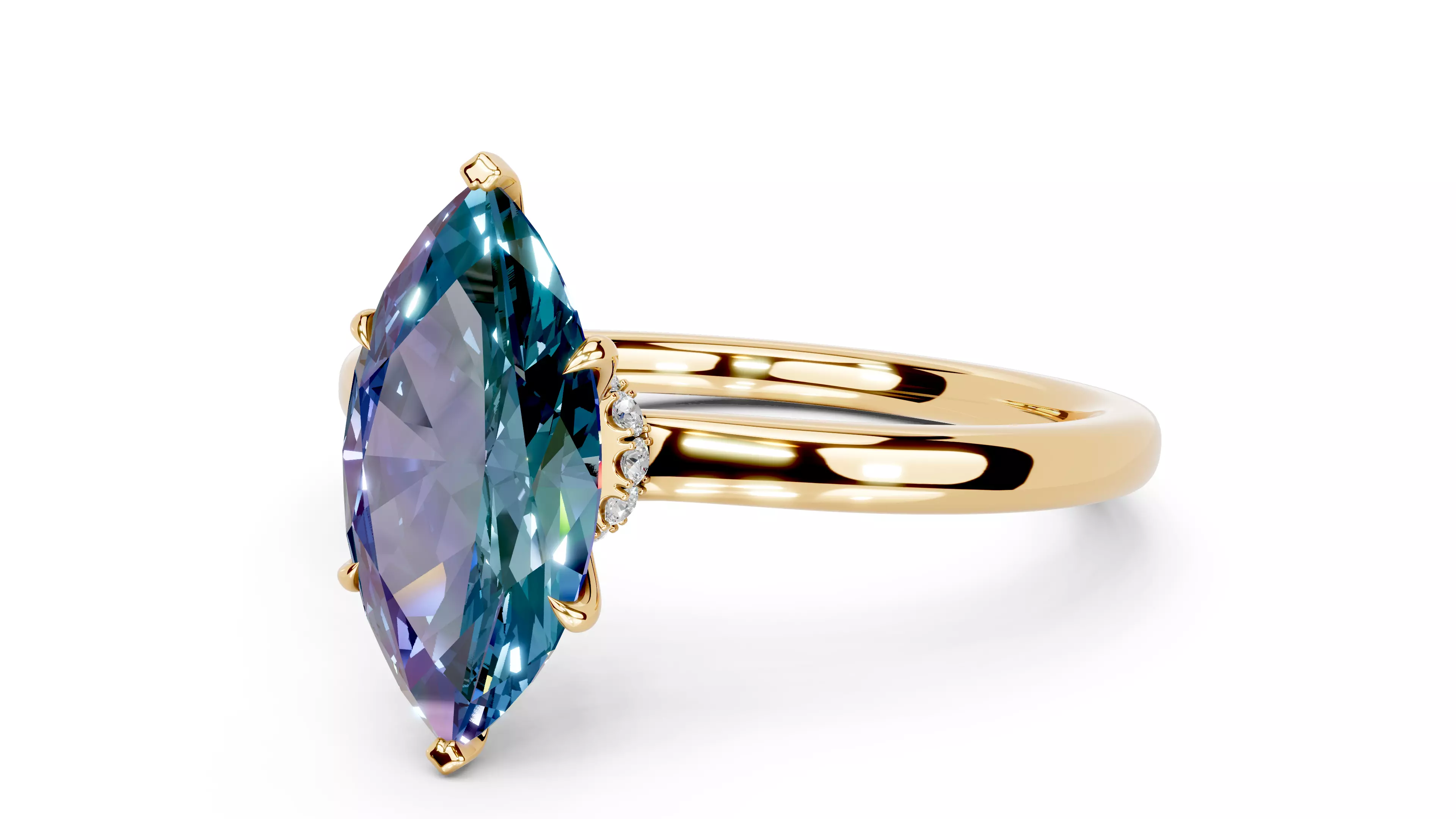 Marquise Cut Diamond Claws Hidden Halo Engagement Ring 3D print model