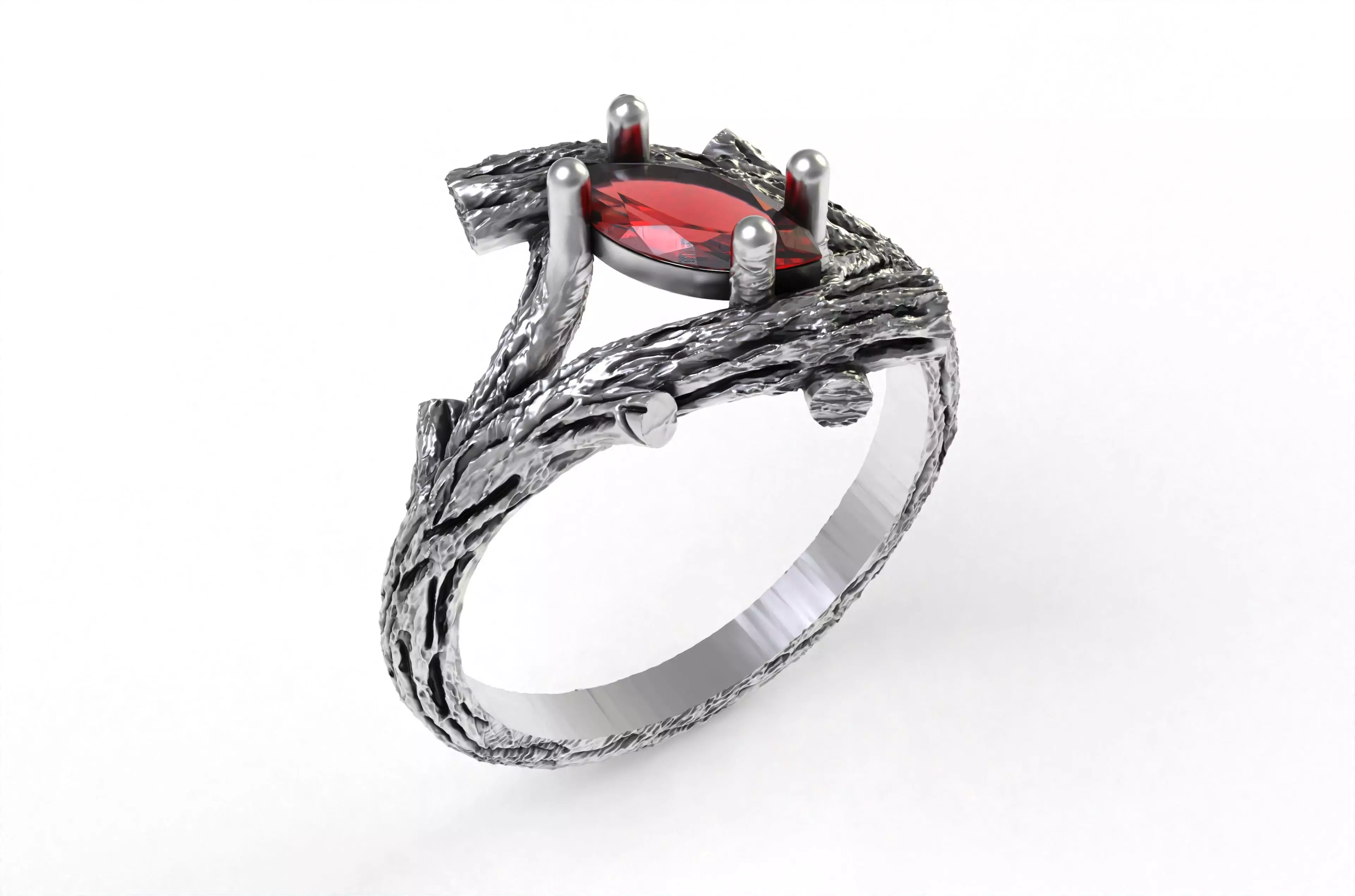 Marquise Diamond Branch Textured Ring
