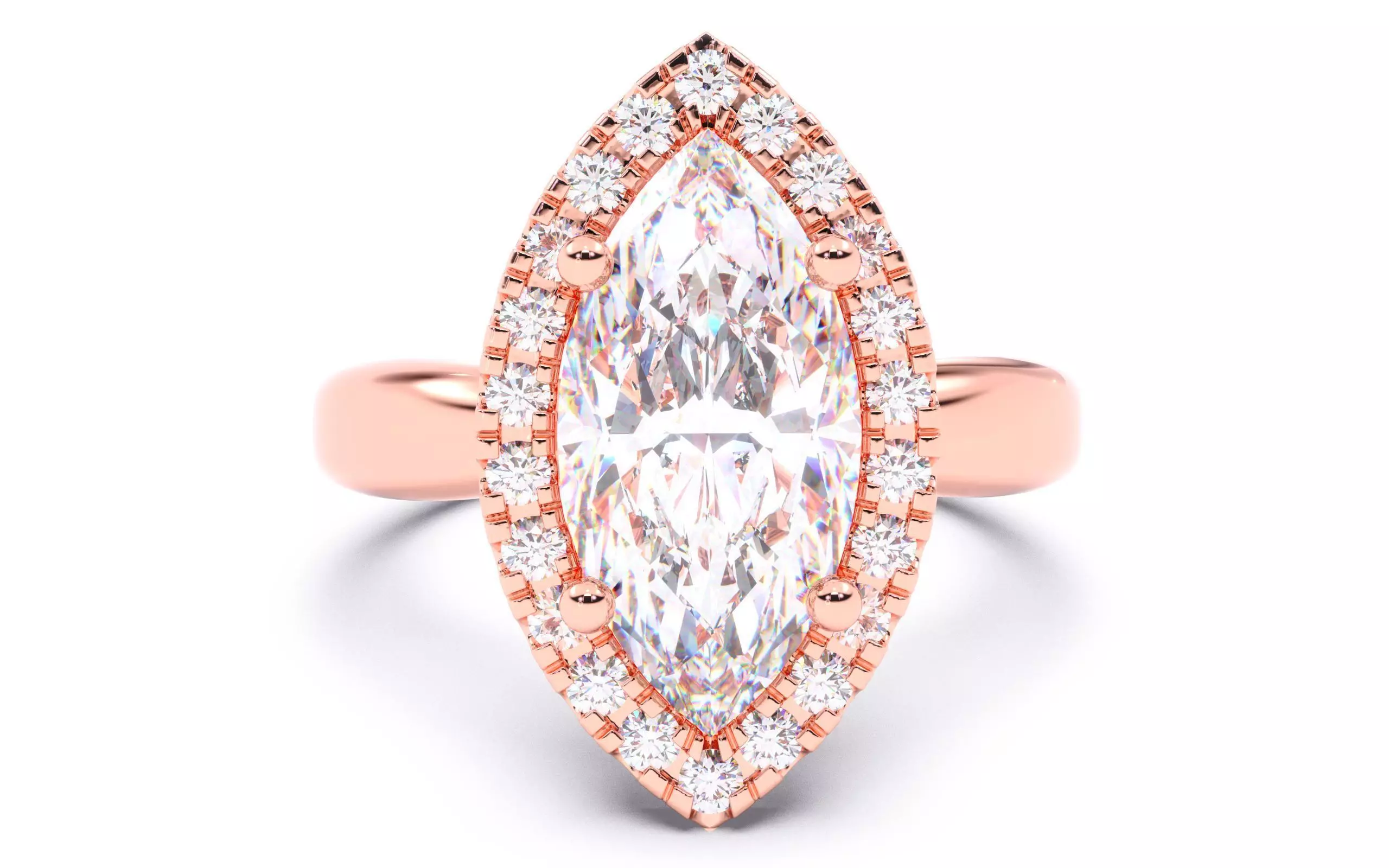 Marquise Diamond Halo Setting Solitaire Ring 3D print model