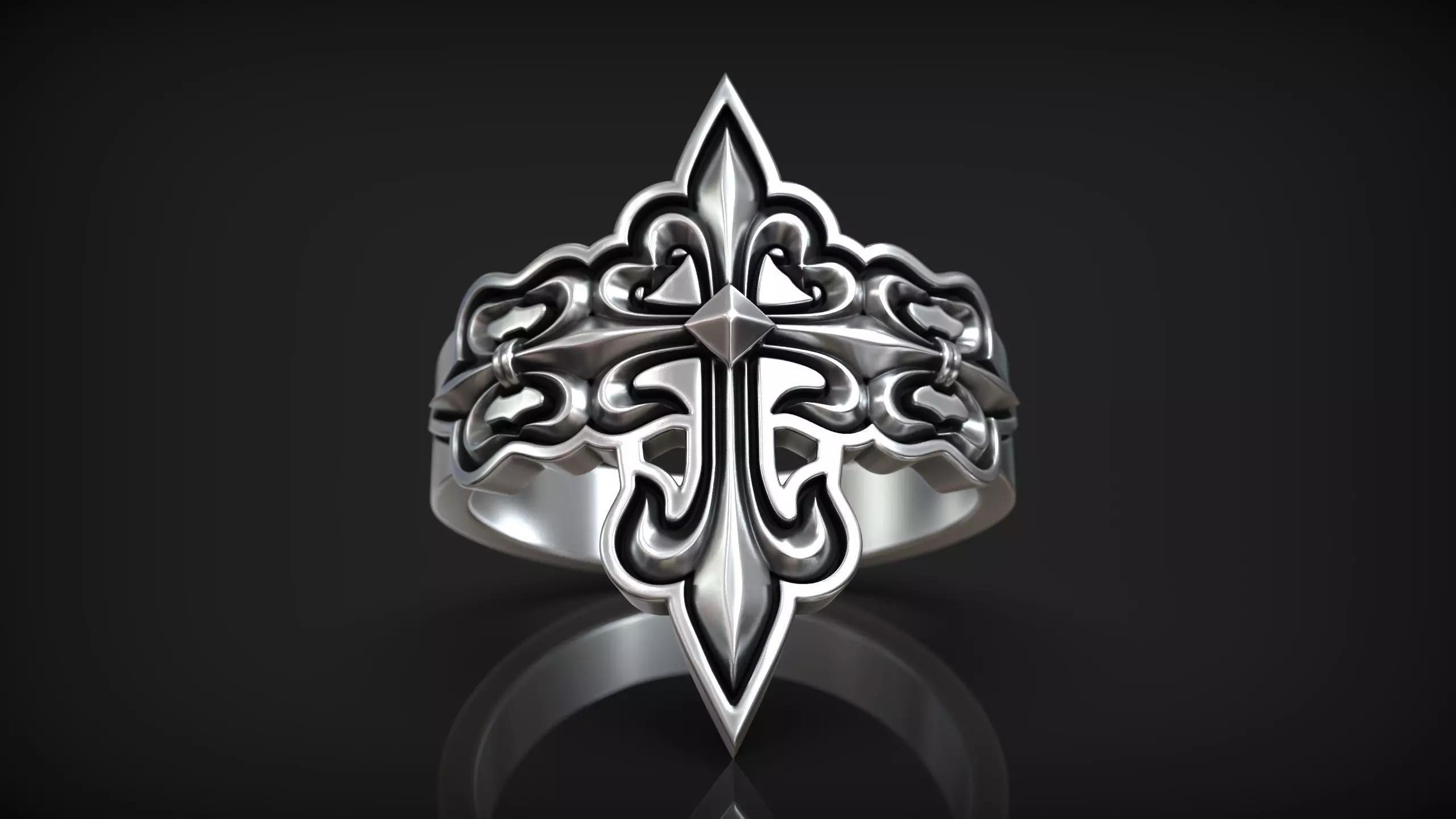 This 3D model features a medieval-inspired gothic ring centered around a bold and elegant Maltese-style cross with royal detailing. The design combines sharp lines with flowing ornamental flourishes, creating a powerful and timeless look. Ideal for casting in silver or gold, the ring is perfect for historical, fantasy, or statement jewelry collections. Whether you're a jeweler, digital sculptor, or collector of 3D assets, this model brings intricate craftsmanship and dramatic presence to your portfolio. Suitable for men and women who appreciate gothic elegance and medieval symbolism.