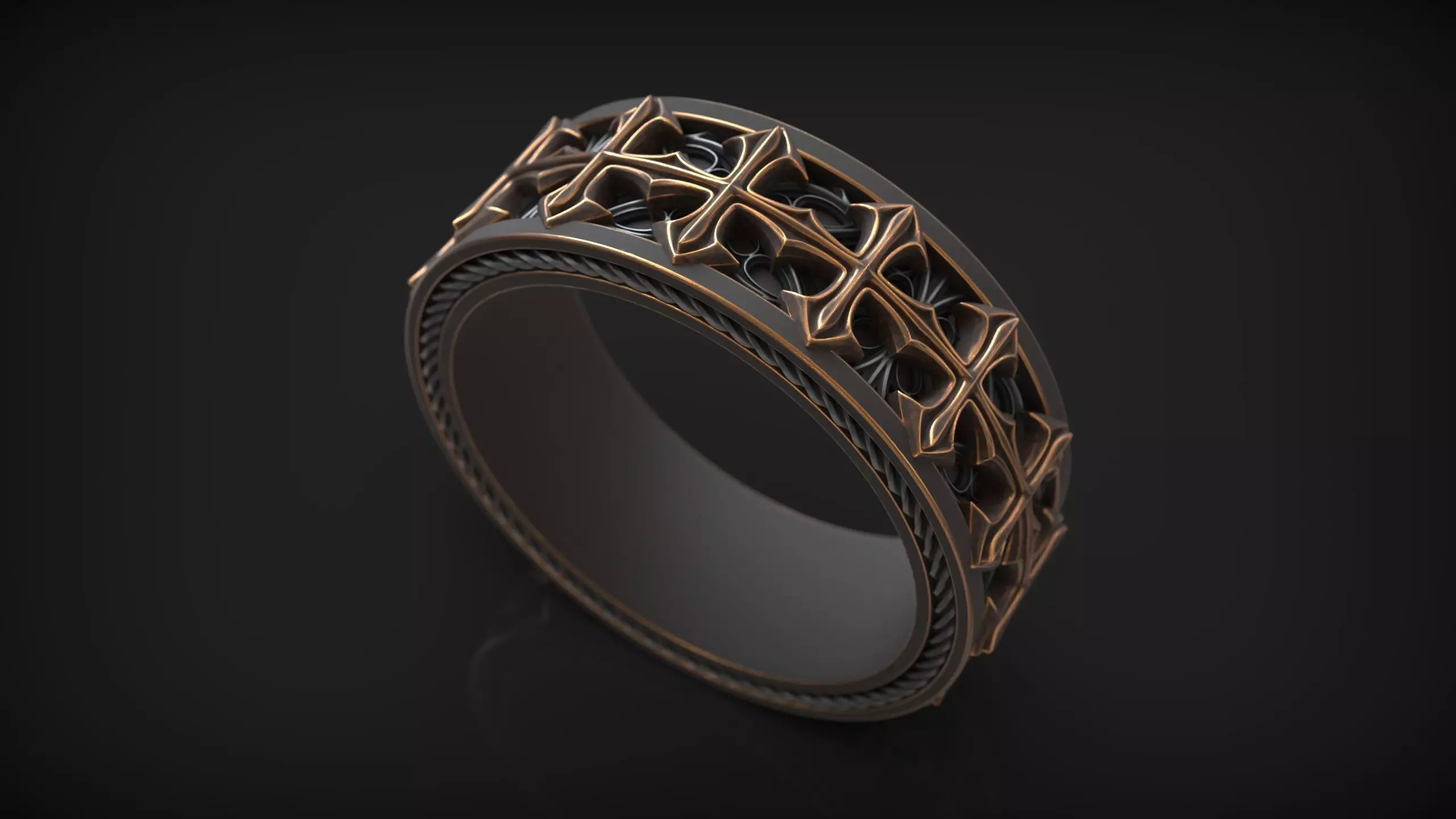 The inner surface of the band is smooth for comfortable wear, while the outer structure showcases a refined symmetry and precise detailing ideal for 3D printing and precious metal casting. Perfect for Gothic jewelry collections, historical reenactments, or as a symbolic fashion accessory that evokes faith, power, and timeless artistry.