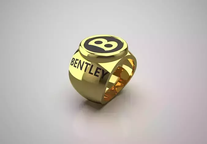 On one side of the band, the name “BENTLEY” is engraved in a modern font, adding to the luxurious appeal of the ring. The overall shape is round and striking, giving it a expressive look. The combination of the recognizable logo and high-quality materials makes this ring a perfect accessory for car enthusiasts and Bentley fans.