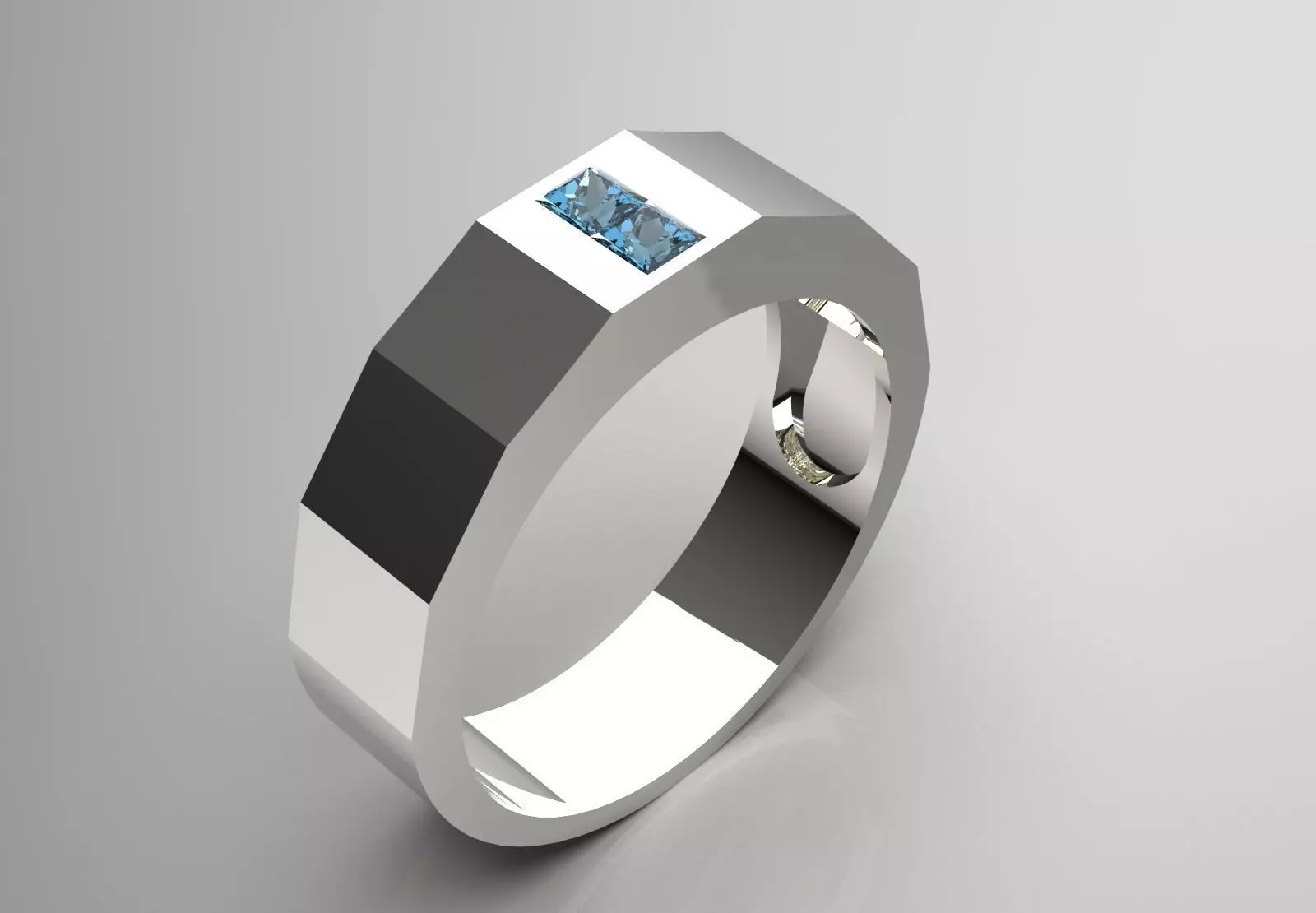 Men's Geometric Ring with Blue Stones Model MR0213 - Powerful Simplicity
