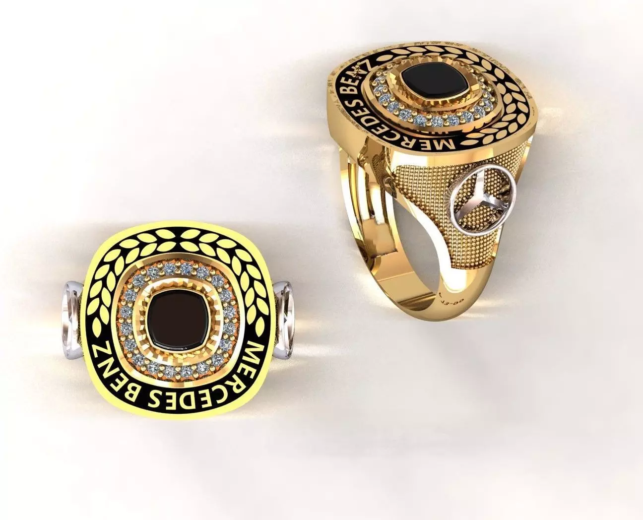 Men s onyx stone ring Mercedes Benz design 3D print model