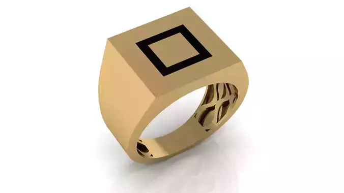 Mens Black Enamel Geometric 16 mm Signet Ring 3 3D print model