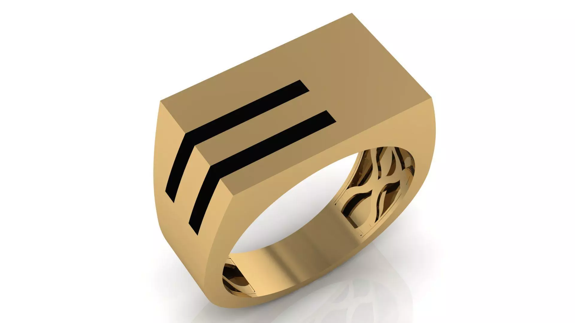 Mens Black Enamel Geometric Signet Ring 6 3D print model