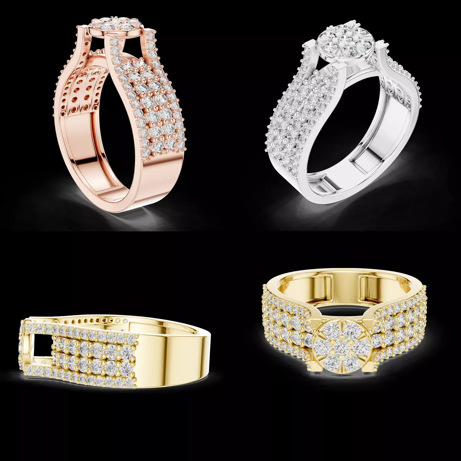 Crafted with precision for jewellery manufacturing, this 3D model ensures clean geometry, accurate stone placement, and a durable structure suitable for casting and finishing. The wide band provides comfort and stability, making it ideal for everyday wear as well as special occasions.