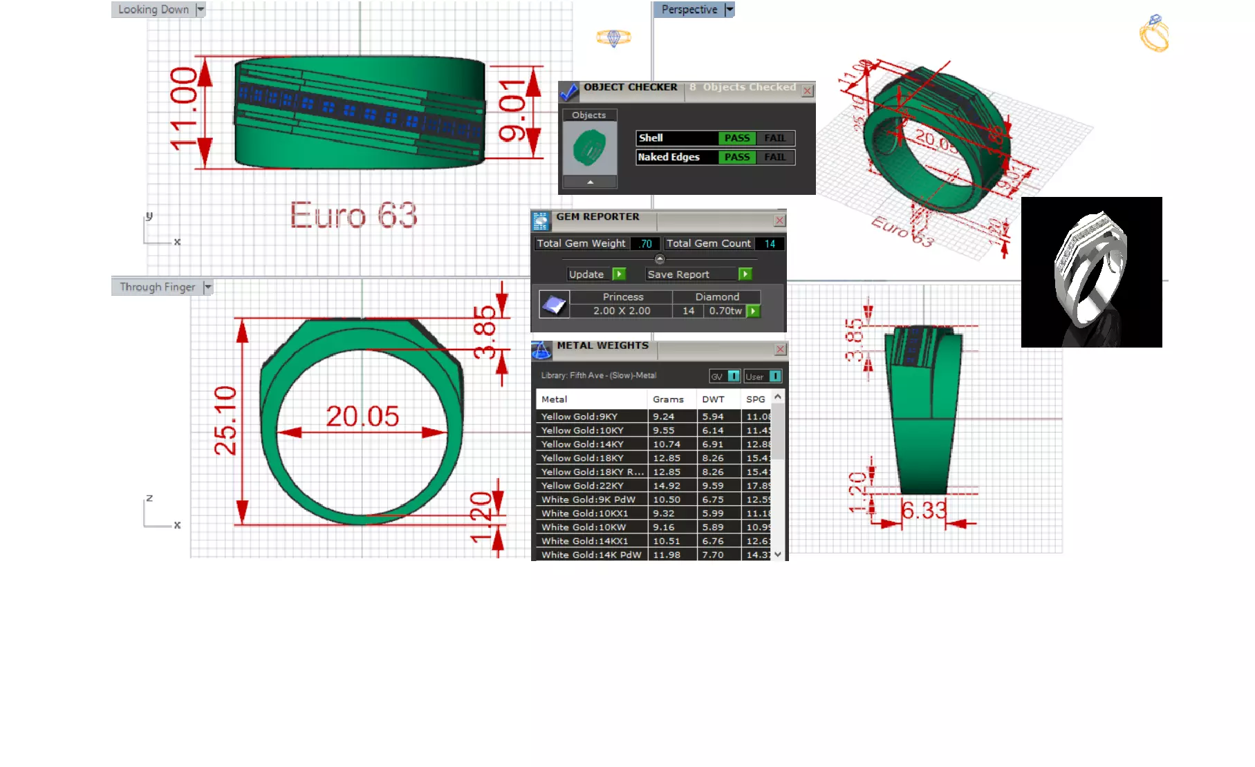 Diamond Size and Carat Weight: 14 Princess Cut Diamonds. Total Diamond Weight 0.70 Carats. Check the Diamond Chart Attached in the Image