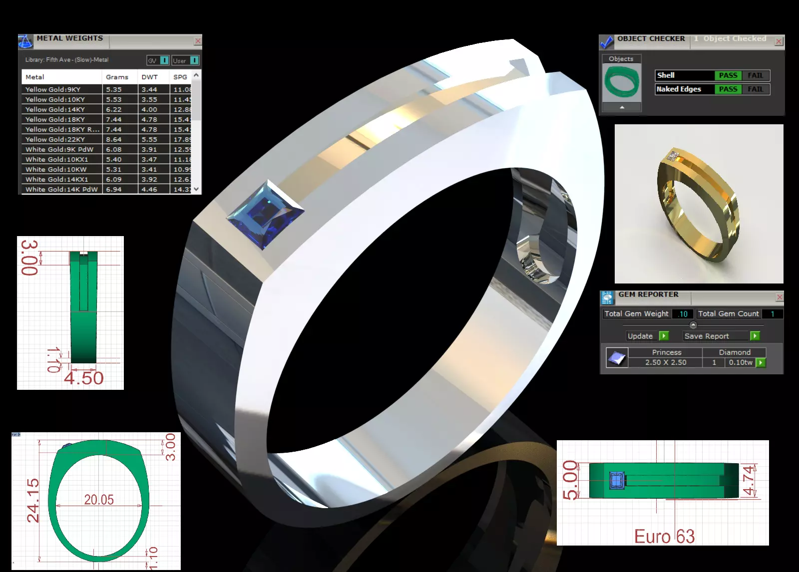 Diamond Size and Carat Weight: 1 Princess Cut Diamond. Total Diamond Weight 0.10 Carats. Check the Diamond Chart attached in the image.