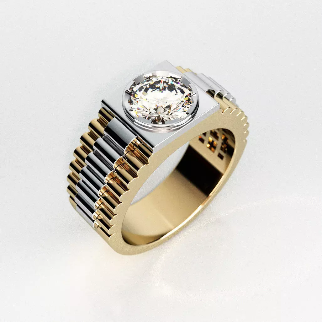 Mens ring model with round gemstone 004 3D print model