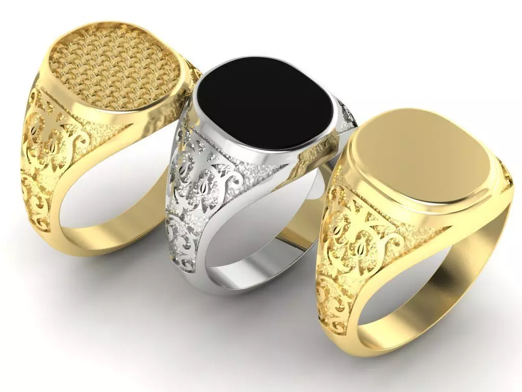 Four different options.You can see the dimensions of the model on one of the photos presented here.There 3dm file for editing and stl for printing.90% of my 3d models have been checked: made wax and finished product in gold or silver . High polygonal model.Made in program Matrix+Rhinoceros. Model was checked and healed in program Magics .Ready for the print. Mesh: vertex count = 203138 facet count = 262116Volume = 955.8 -1255.8 (+/- 1e-06) cubic millimeters#jewellery #male #signet #jewelry #vintage #printable #ring #men #black #gem #onyx #gold #jewel #rings #gem #3ds #stl
