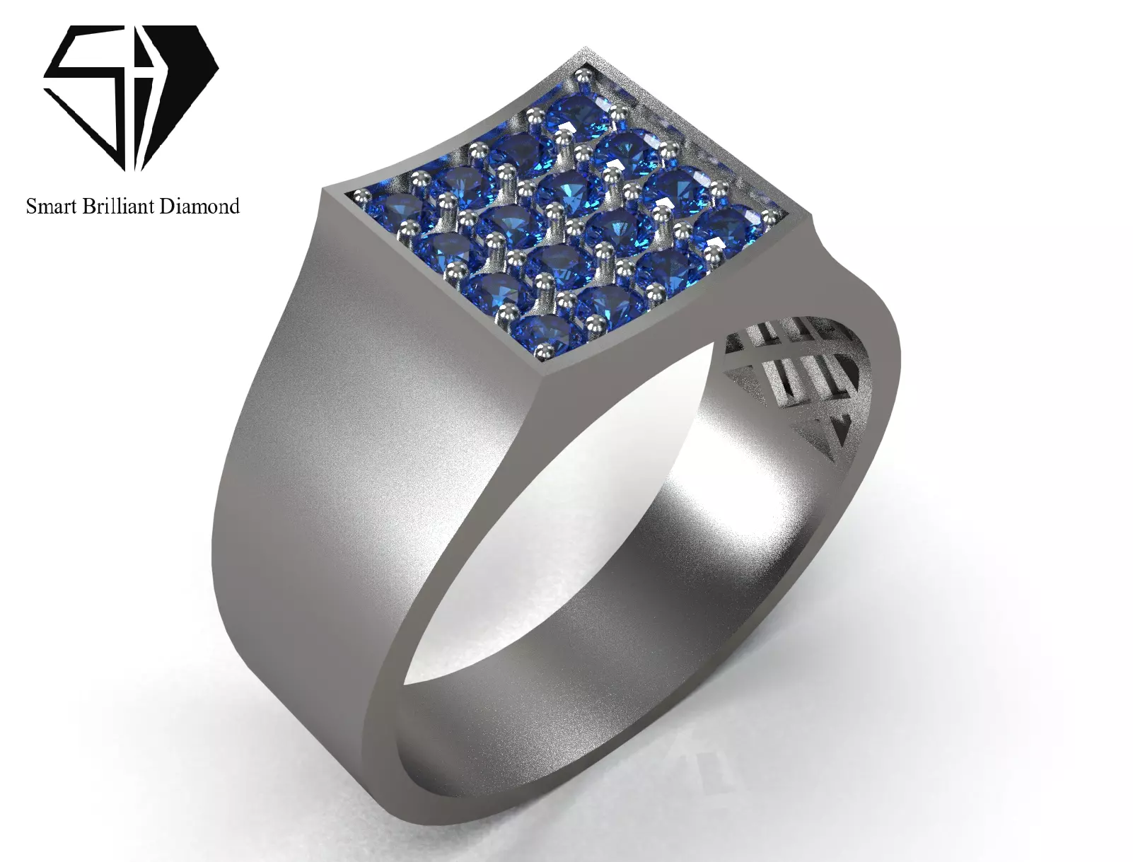 Men's Statement Pave Ring - 3D Print Ready (Model mr0371)The mr0371 Men's Ring is a masterpiece of digital jewelry design, designed for discerning customers and luxury products. With a large square face, covered in sparkling tiny stones, this model creates a unique sparkle that will draw attention to itself in any showcase.