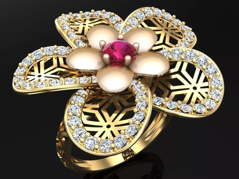 Mesh flower ring - Italian rings - Womens Rings - N6356.Rings are designed delicate, meticulously detailed by Rhino Matrix, Zbrush software.Suitable for processing jewelry silver, Platinum ... You can ask us questions if you have any questions. We will support and reply as soon as possible.