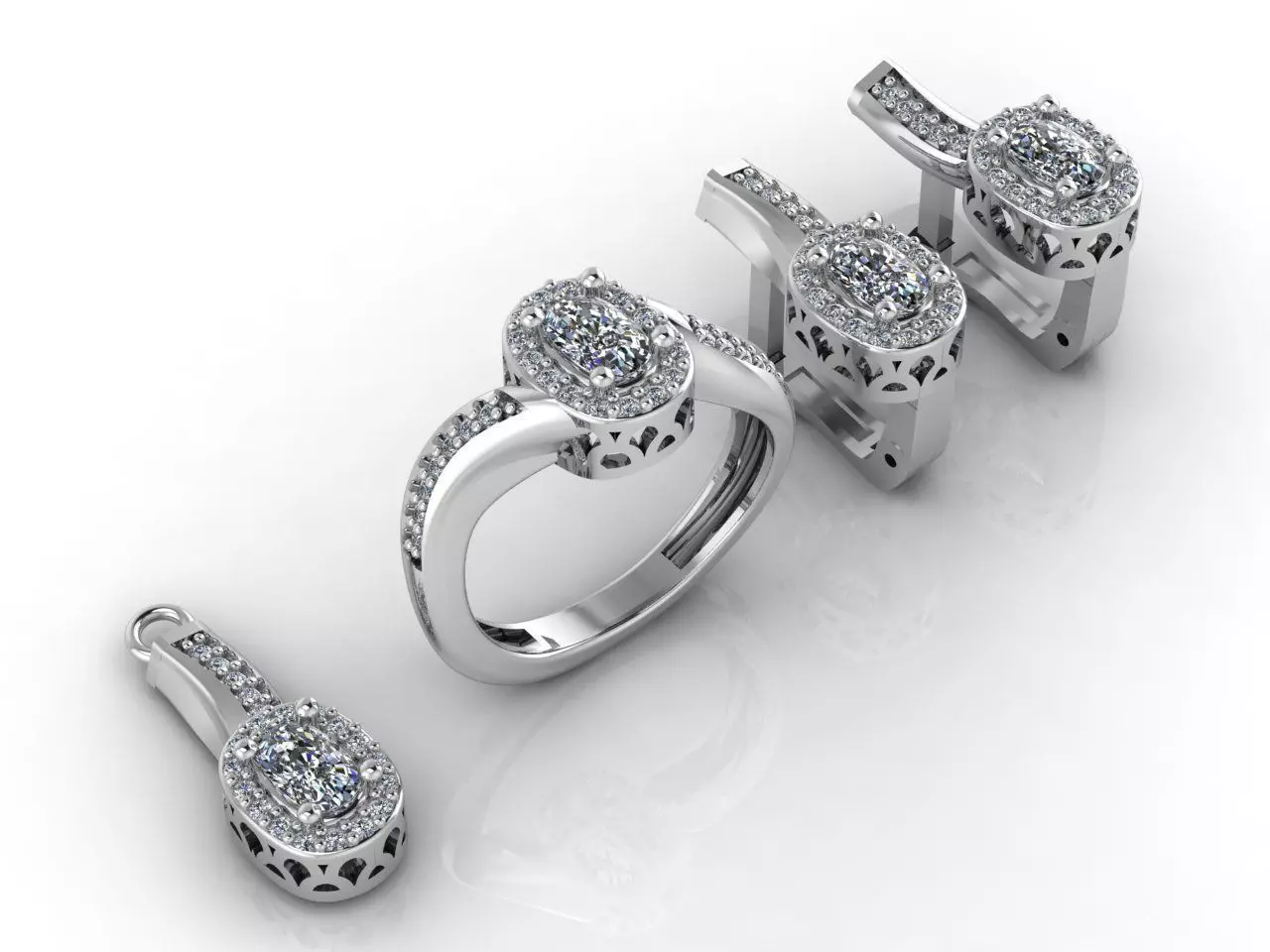 Mini Set Ring Pendant Earrings STL 3DM Womens Jewelry 3D print model
