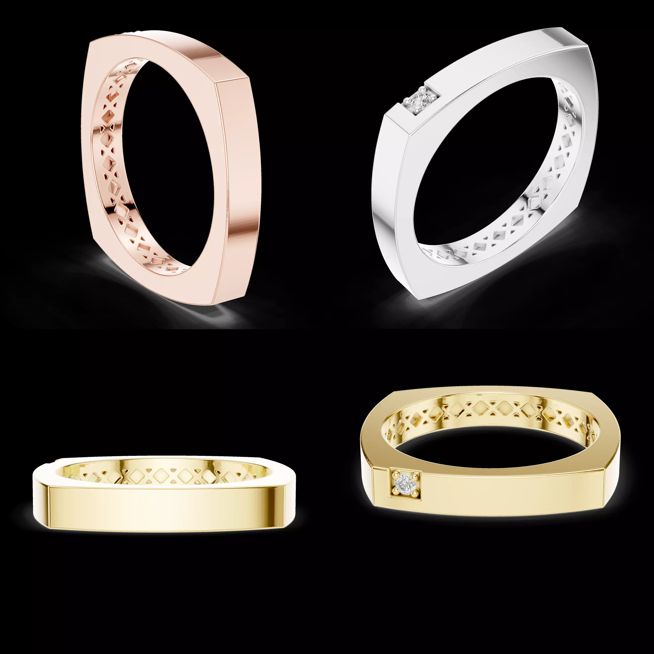 This modern diamond band ring CAD design showcases a clean flat-profile structure with a subtle embedded diamond accent, offering a refined and contemporary aesthetic. The minimalist geometry combined with sharp edges and smooth surfaces makes this design ideal for wedding bands, promise rings, and everyday luxury jewellery.