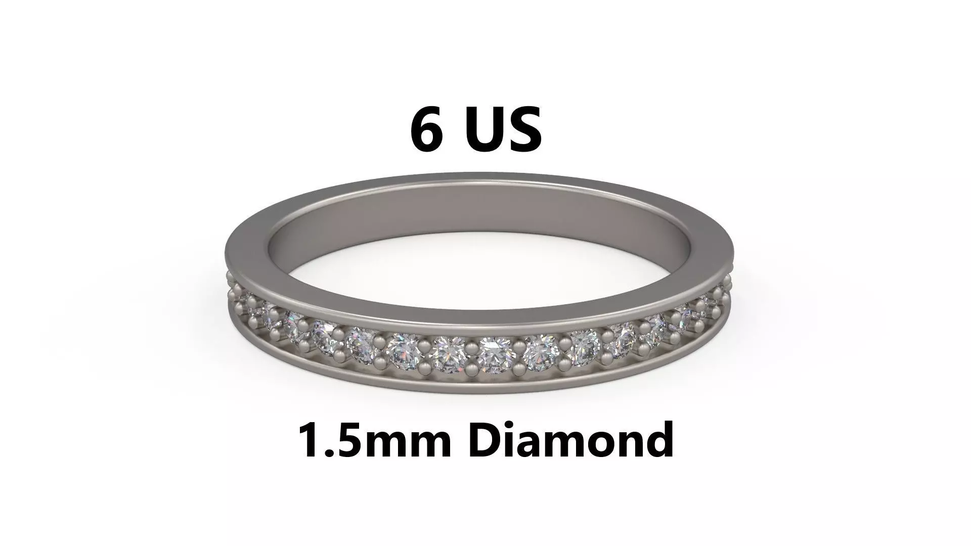 Model 1224 Eternity Diamond Wedding Band Ring 6 US Size 1point5mm Diamond