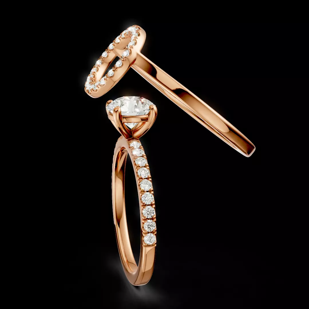 Pavé-set diamonds on both bands, including halo detailing