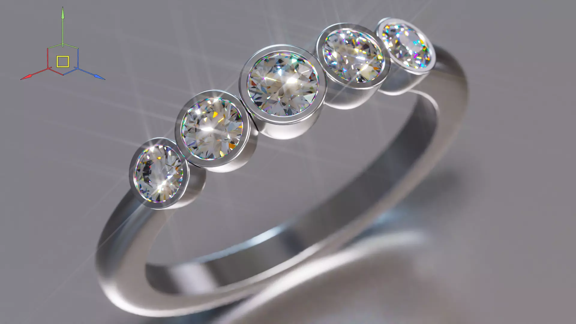 -Ring size: US 6.5-Stone sizes: 3.36 mm / 3.0 mm / 2.7 mm (round)-Total stones: 5-Stone cut: Round Brilliant-File format: STL / 3DM / OBJ