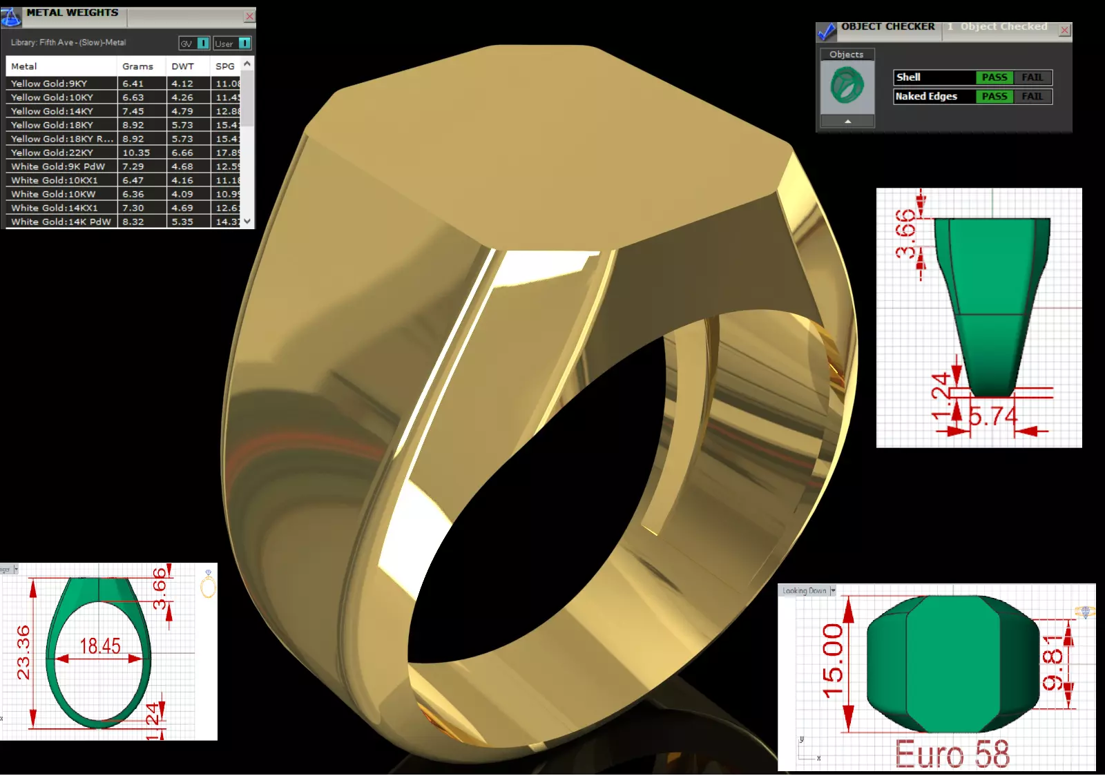 General Shape: The top surface of the ring is a Multifaceted Flat Surface or Beveled/Octagonal square, which is the main feature of a signet ring.