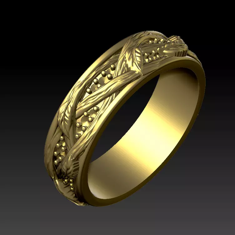 This nature-inspired band ring 3D model features flowing vine and leaf motifs with extremely sharp, refined detail.The intertwined organic lines and pavé-style stone layout create a delicate yet elegant look, while all surfaces remain clean and well-defined after casting and polishing.