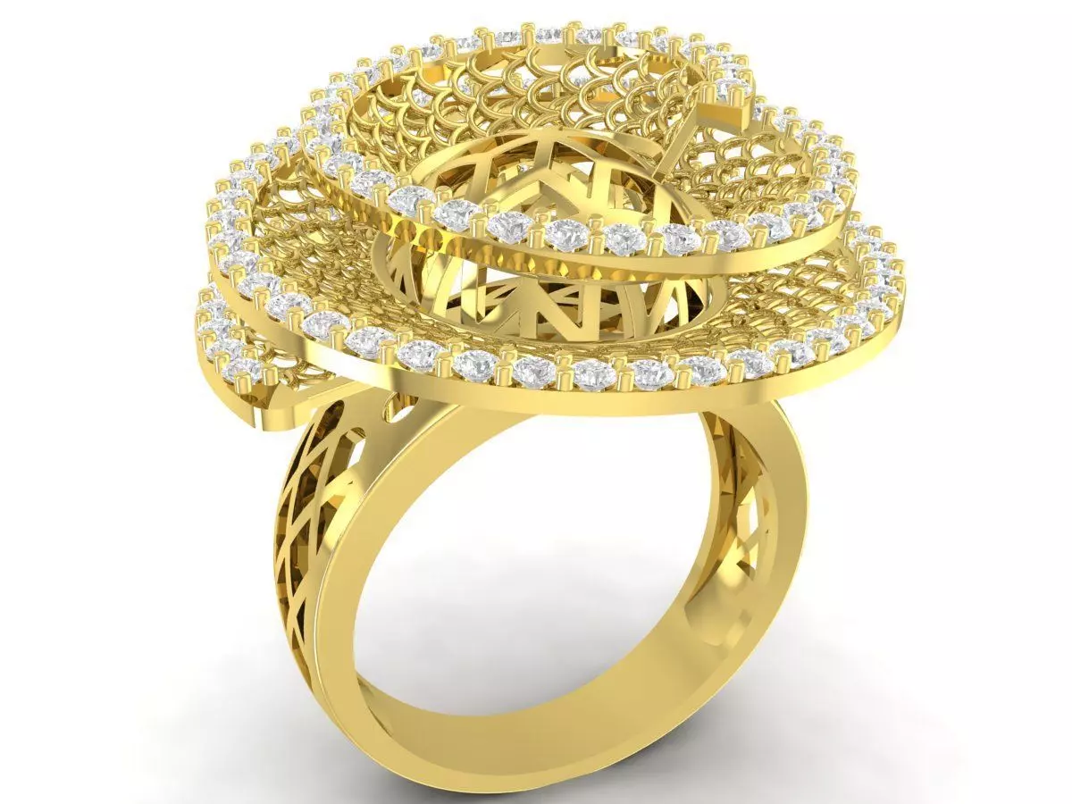 This luxury multi halo cluster ring 3D model features an elegant layered design with multiple circular rows of stones arranged in a sophisticated spiral structure. The overlapping halos create a sense of movement and depth, making the ring visually rich and highly luxurious.