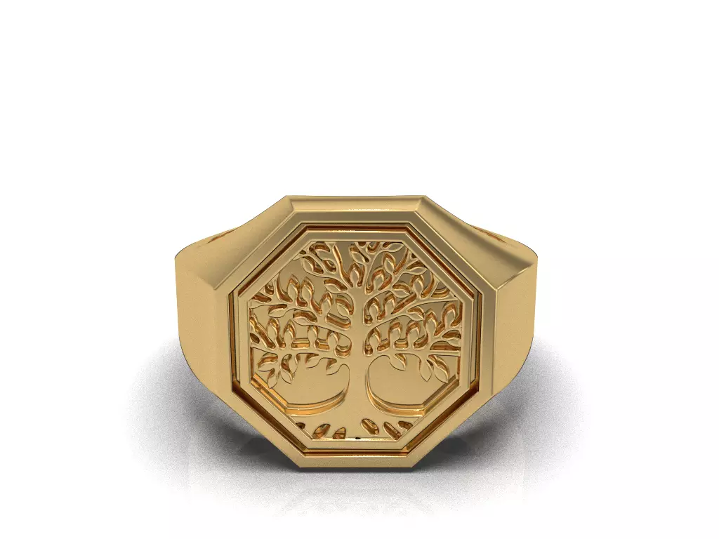 OCTAGONAL MEN'S RING WITH TREE OF LIFESIZE 10WEIGHT10K 8.15G14K 9.6G18K 11.4G