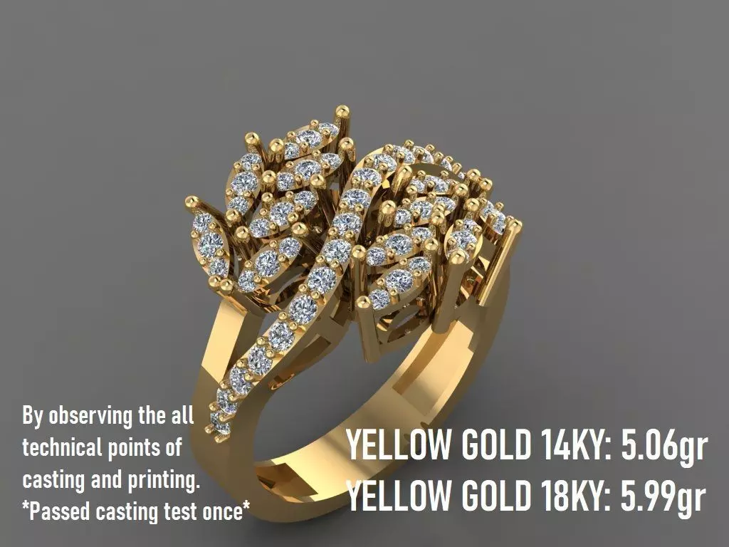 You may have seen many olive leaf rings, but this one with round stones is more distinctive and special than all of them. This ring in size** 53EU** was designed by Matrix 9 and rendered by V Ray. It does not have any technical problems and has passed the casting and manufacturing test once and is now ready for casting and printing. Stonesetting cutters have also been used for the work. 6 different formats have been prepared for you: STL, 3DM, FBX, AMF, 3MF, and OBJ, and f you need other formats or sizes, message me.