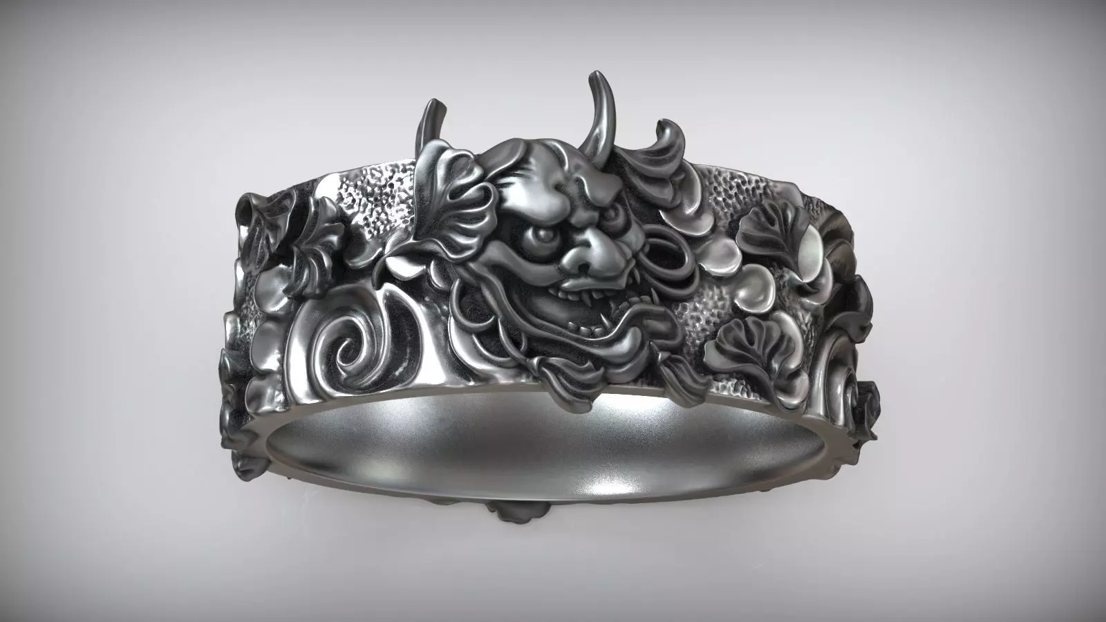 Hannya Kabuki Japanese Mask Traditional Ornament Wedding Band