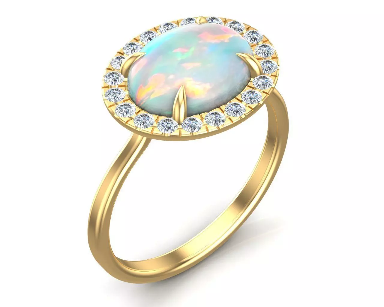Opal White Cab Halo Diamond Ring 3D print model