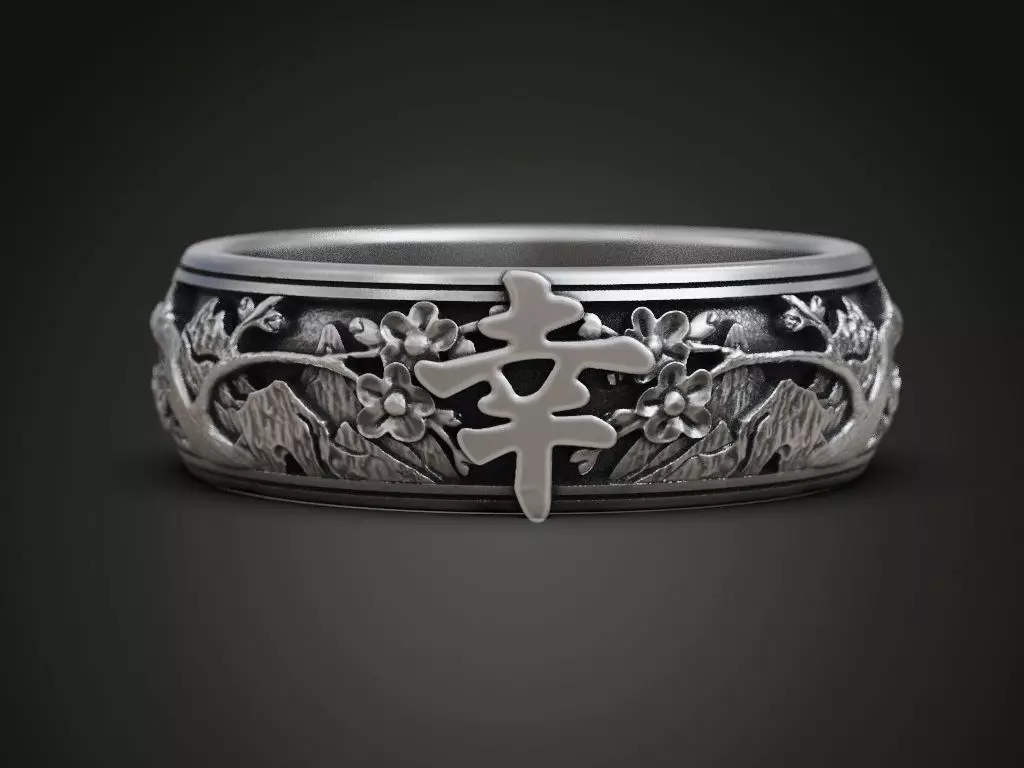 Oriental landscape hieroglyph happiness ring 3D print model