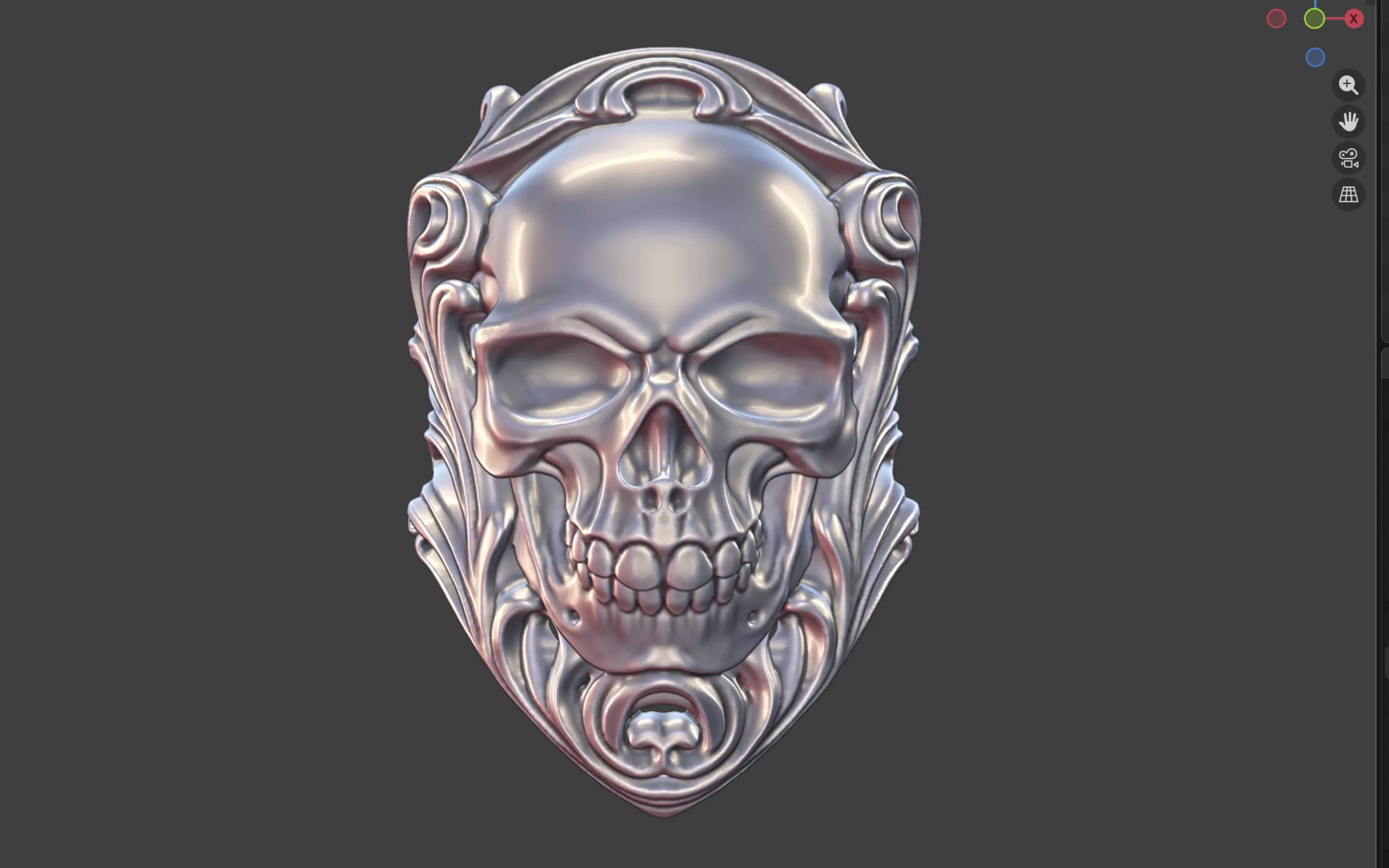 ornate silver human skull ring 3D print model